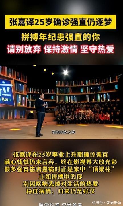 在央视《开讲啦》的舞台上,张嘉益罕见地直面镜头,讲述自己与强直性脊柱炎相伴的日常。 他笑着说每天要比剧组其他人早起至少一小时。